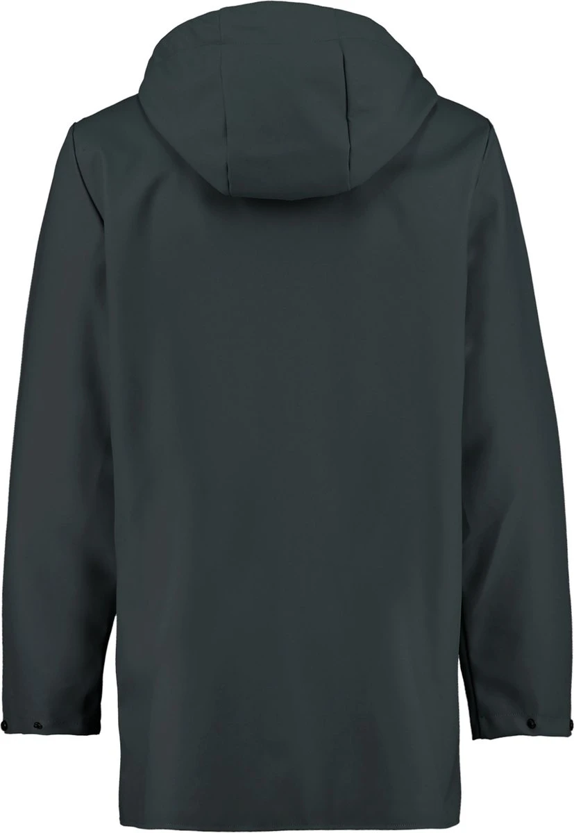 America Today heren regenjas. De Jace is een middel lange regenjas met capuchon ideaal voor op de fiets. De capuchon kan doormiddel van een trekkoord aangetrokken worden voor extra bescherming. Daarnaast is de regenjas voorzien van een rits- en drukknoopsluiting en twee steekzakken met drukknoopsluiting. Dit klassieke regenjas model kan elk regen moment uit de kast worden getrokken. Ons model is 182 cm en draagt maat L. Buitenkant jas: 100% Gerecycled polyester met polyurethaan coating Voering: 65% Polyester / 35% Katoen Wij raden je aan om de jas niet te wassen. Product details: • Straight fit • Middel lang • Vaste capuchon • Rits- drukknoopsluiting • Water resistant • Wind proof • Recycled polyester • Lengte voorkant vanaf hoogste schouderpunt is 84,50 CM • Lengte achterkant vanaf hoogste schouderpunt is 84,50 CM * gebaseerd op maat M