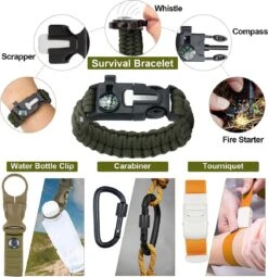 YONO Survival Kit Outdoor – Armband – Zakmes – Zaklamp – Vuurstarter – Kompas En Meer – XL Set