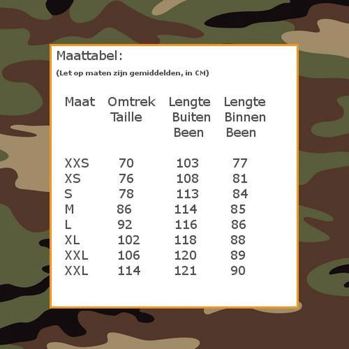 Deze onderhoudsvriendelijke, duurzame BDU broek – ook bekend als Ranger Broek, US veld broek, Army Cargo broek of Cargo pantsis gemaakt van 65% polyester en 35% katoen, voorzien van 6 zakken en verkrijgbaar in verschillende kleuren. De klassieke ARMY broek type BDU zit comfortabel, is gemakkelijk schoon te maken, vrijwel onverwoestbaar en is éénvan onze meest populaire producten.LET OP! Deze broeken vallen erg groot. Bestel 1 maat kleiner dan normaal.