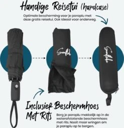 Stormparaplu Opvouwbaar – Stormparaplu Windproof Klein – Zwart – Extra Stevig