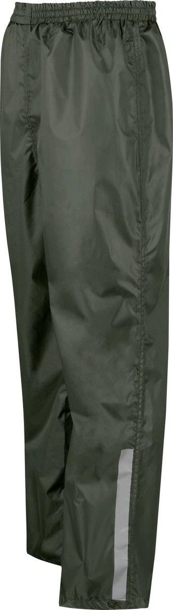 De broekspijpen zijn verstelbaar bij de enkels doormiddel van drukknopen. Door middel van verstelbare koordjes valt de broek goed op de heupen en is deze makkelijk over kleding te dragen. De regenbroek heeft reflecterende details op de onderbenen voor extra zichtbaarheid in het donker.