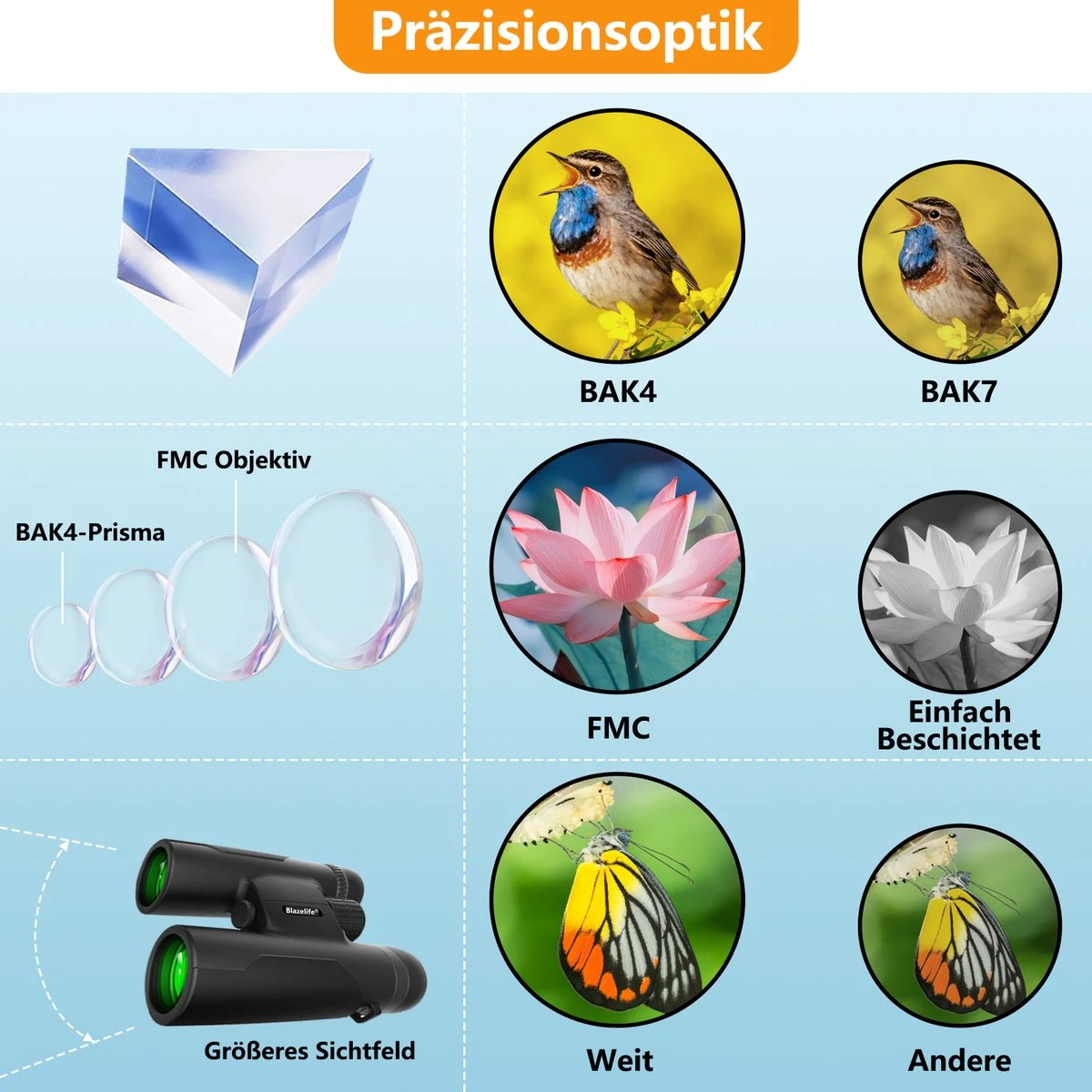 【Asferische lenzen met meerdere coatings】Voor lichtreflectie en minimale vervorming, beter beeld, helderheid, contrast en kwaliteit. Geïntegreerd dioptriecorrectiesysteem voor aanpassing aan individuele zichtvereisten en ook voor brildragers.