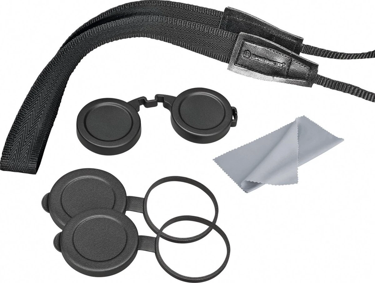 De Bresser S-Serie 8×42 is een slanke dakkant kijker met een vergrotingsfactor van 8x en een optische lensopening van 42 mm. Een dioptriecorrectie maakt dioptriecorrecties tot +/- 2 mogelijk. Een hoogwaardige meerlaagse coating op alle glaselementen vermindert storende reflecties en verbetert de lichttransmissie en zorgt voor een hoog contrast, ook bij mindere lichtomstandigheden. De verrekijker is uitgevoerd met een robuust en vlekbestendig rubberen body. Door het lichte gewicht van slechts 554 gram is hij gemakkelijk te hanteren en te dragen. Voor een transport wordt een tas en een comfortriem meegeleverd.
