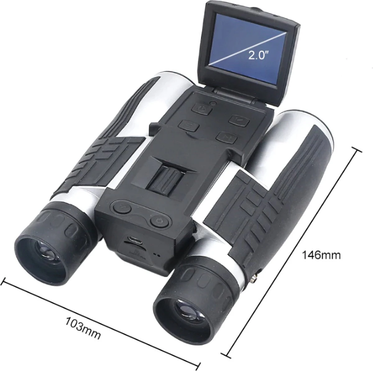 12x vergroting:De digitale verrekijkercamera bekijkt de dingen van dichterbij met een 12x vergroting & 32 mm diafragma-verrekijkersysteem. De verrekijkercamera maakt niet alleen mooie foto’s en is eenvoudig te downloaden, maar kan ook als webcam op de pc worden aangesloten.