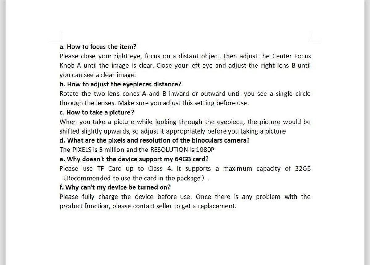 Let op: We adviseren je altijd om de verrekijker op te laden door middel van een USB poort van een computer / laptop/TV of adapters met een maximale vermogen van 5W 1A.
