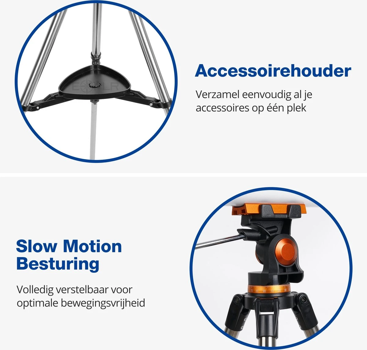 ➤ Gemakkelijk mee te nemen – De telescoop, de accessoires en het statief zijn licht van gewicht en passen gemakkelijk in de meegeleverde reistas.