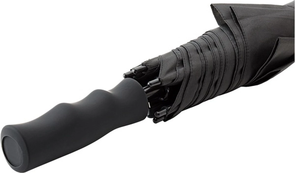 Deze Falcone® golfparaplu is automaat, windproof, voorzien van zwart glasfiber frame, polyester pongee doek en zwart rubber gecoat handvat.