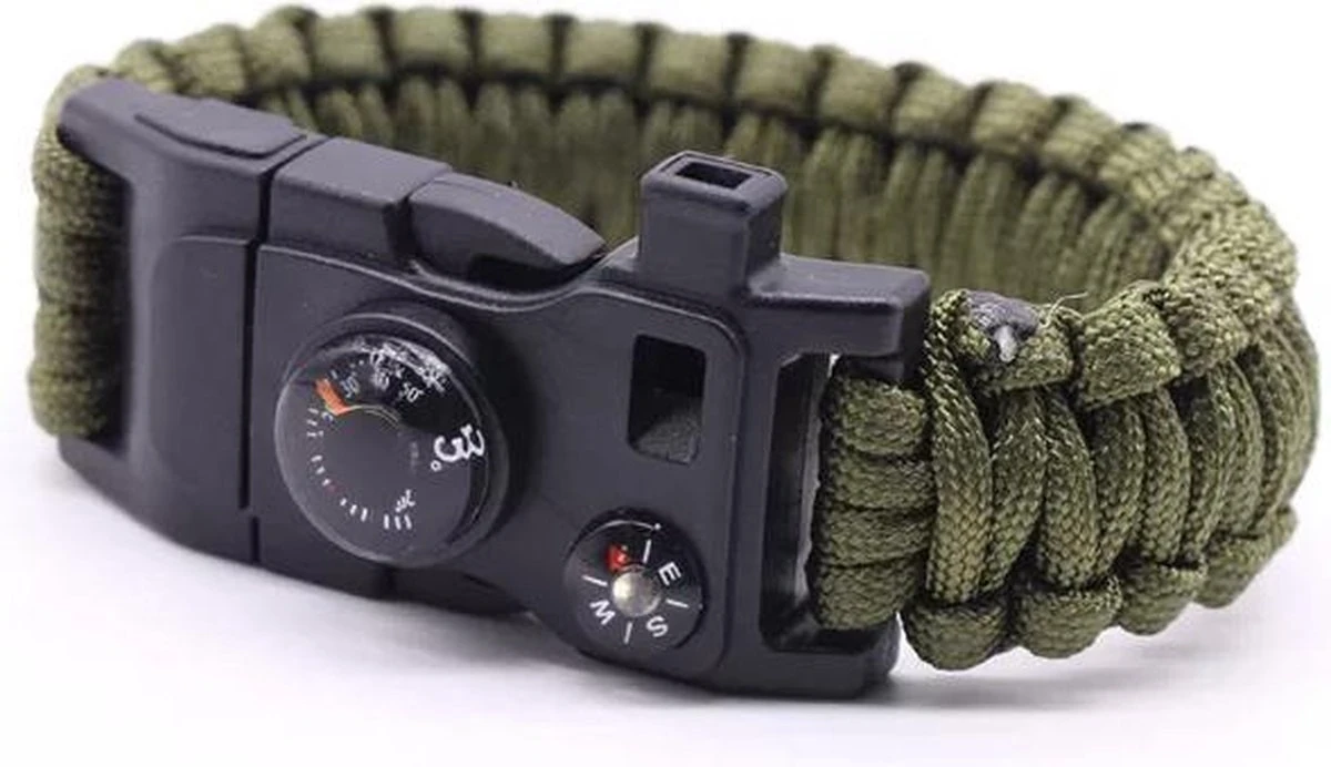 Ga je op avontuur? Deze stoere 15-in-1 outdoor paracord survival armband vergroot je overlevingskans! Deze prachtige reisgadget heeft maarliefs 15 functies waaronder vuur maken! Het perfecte overlevings-gereedschap voor aan de pols. Jij bent in iedere situatie veilig. Jij weet precies hoe warm het is door de thermometer en weet altijd waar je naartoe gaat met het kompas. Daarbij heb je altijd meer dan 3 meter touw op zak om te overleven. Lees snel verder om alle functies te ontdekken!