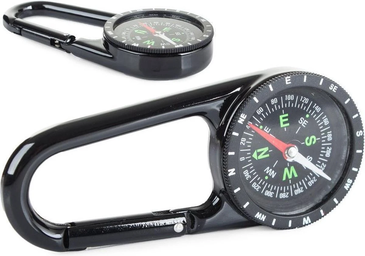 Een handig kompasje met een karabijnhaakje. Hierdoor kun je het gebruiken als sleutelhanger, maar bijvoorbeeld ook ophangen aan je rugzak tijdens een wandeling of hike.