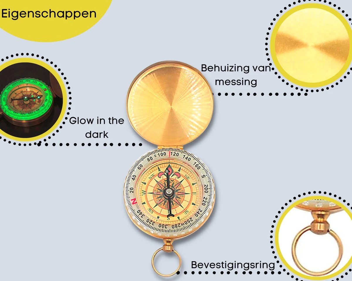 Het kompas heeft een messing behuizing en heeft gesloten een klassieke uitstraling.
