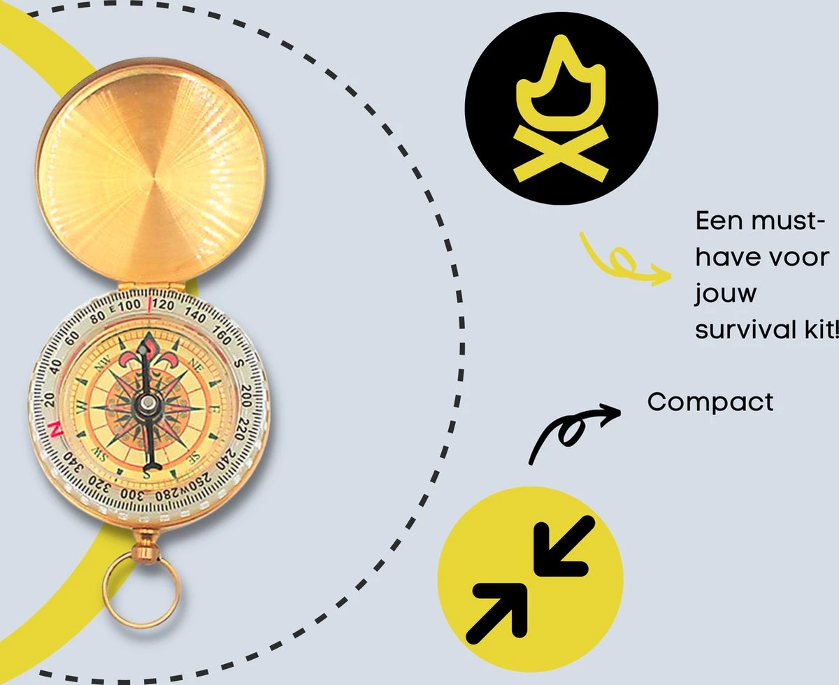 Altijd de weg terug vinden met dit kompas. Ook in het donker want de pijl en de buitenrand zijn glow in the dark, dus altijd zichtbaar.