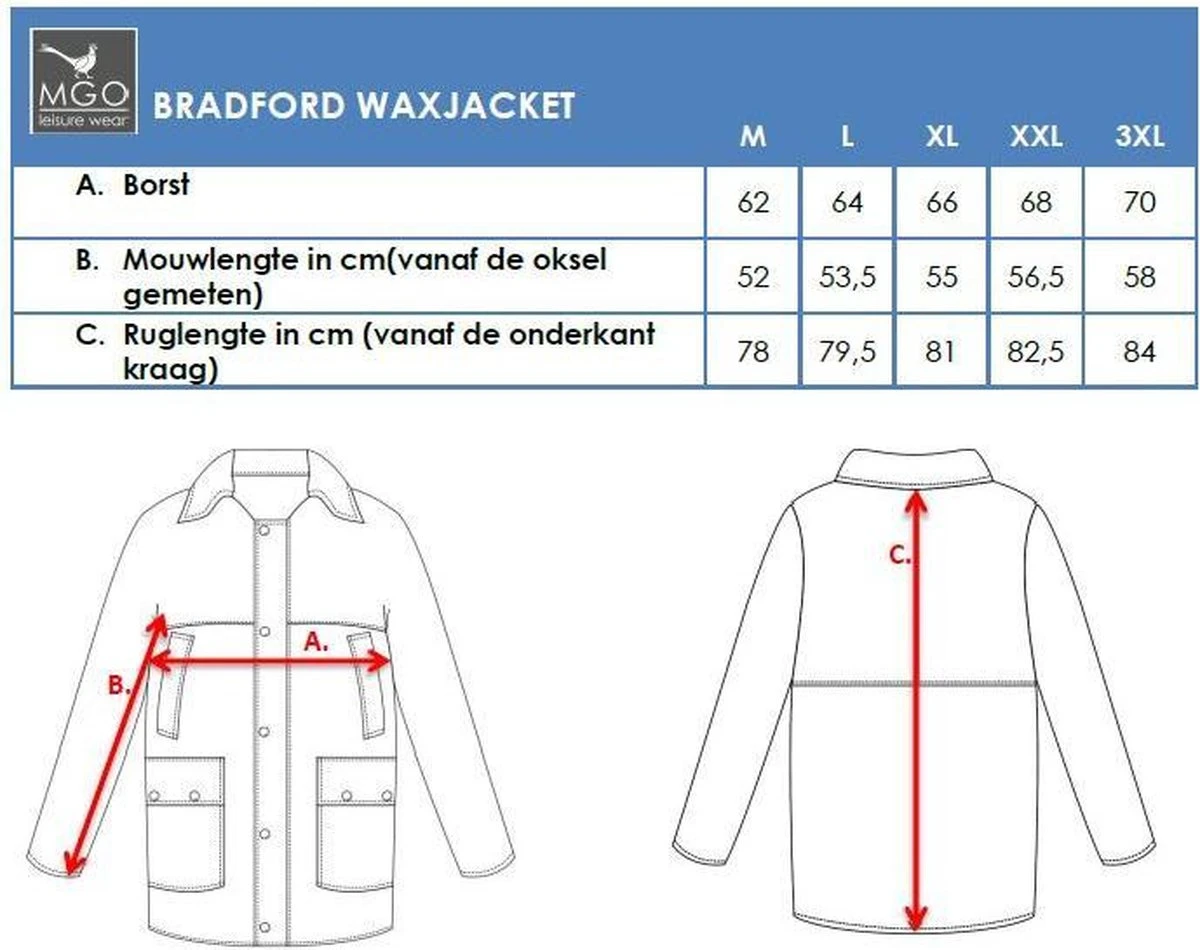 Een waxjas heeft af en toe een klein onderhoud nodig op de plekken waar de jas het meeste wrijving heeft of het meest te verduren heeft van de zon. Hiervoor is er bij ons MGO waxspray verkrijgbaar. Bij een goede verzorging kunt u vele jaren plezier hebben van deze waxjas. Tip! Laat hem altijd goed drogen maar uit de buurt van de verwarming.