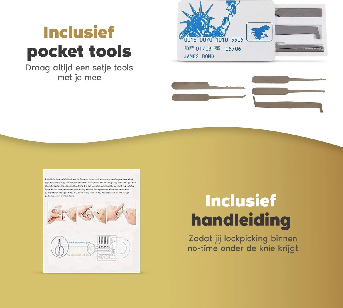 Premium materiaal – De sloten en lockpick tools zijn gemaakt van zeer stevig plastic en staal zodat het niet zal breken tijdens het oefenen.