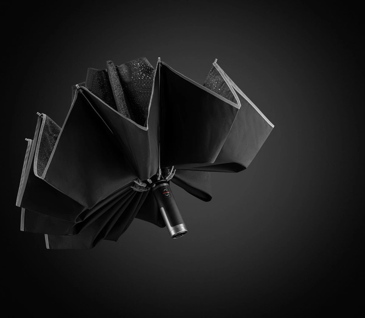 - Uniek revolutionaire omgekeerd ontwerp, zorgt ervoor dat uw eigendommen (in uw auto en tas) droog blijven.