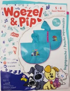 Woezel En Pip – Kinder – Regenjas – Regenponcho – Lichtblauw – Maat 110/116 – Leeftijd 5/6 Jaar