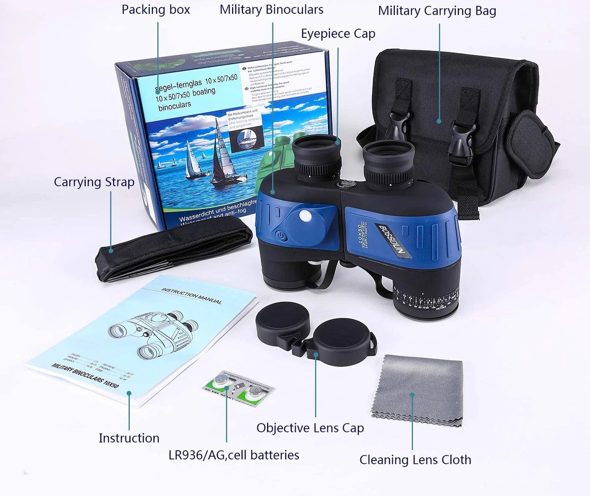 Deze10x50 Marine verrekijker is ontworpen om te voldoen aan extreem hoge eisen. Het kan onder alle weersomstandigheden worden uitgevoerd, zelfs bij extreme regenval of hoge luchtvochtigheid. U krijgt dus alle tools die u nodig heeft voor uw volgende buitenactiviteiten, zoals marine, navigatie, vissen, varen, watersporten, vogels kijken, wildreizen en meer. De verrekijker heeft een ingebouwde digitale rangefinder en kompas wat onmisbaar is tijden navigatie.