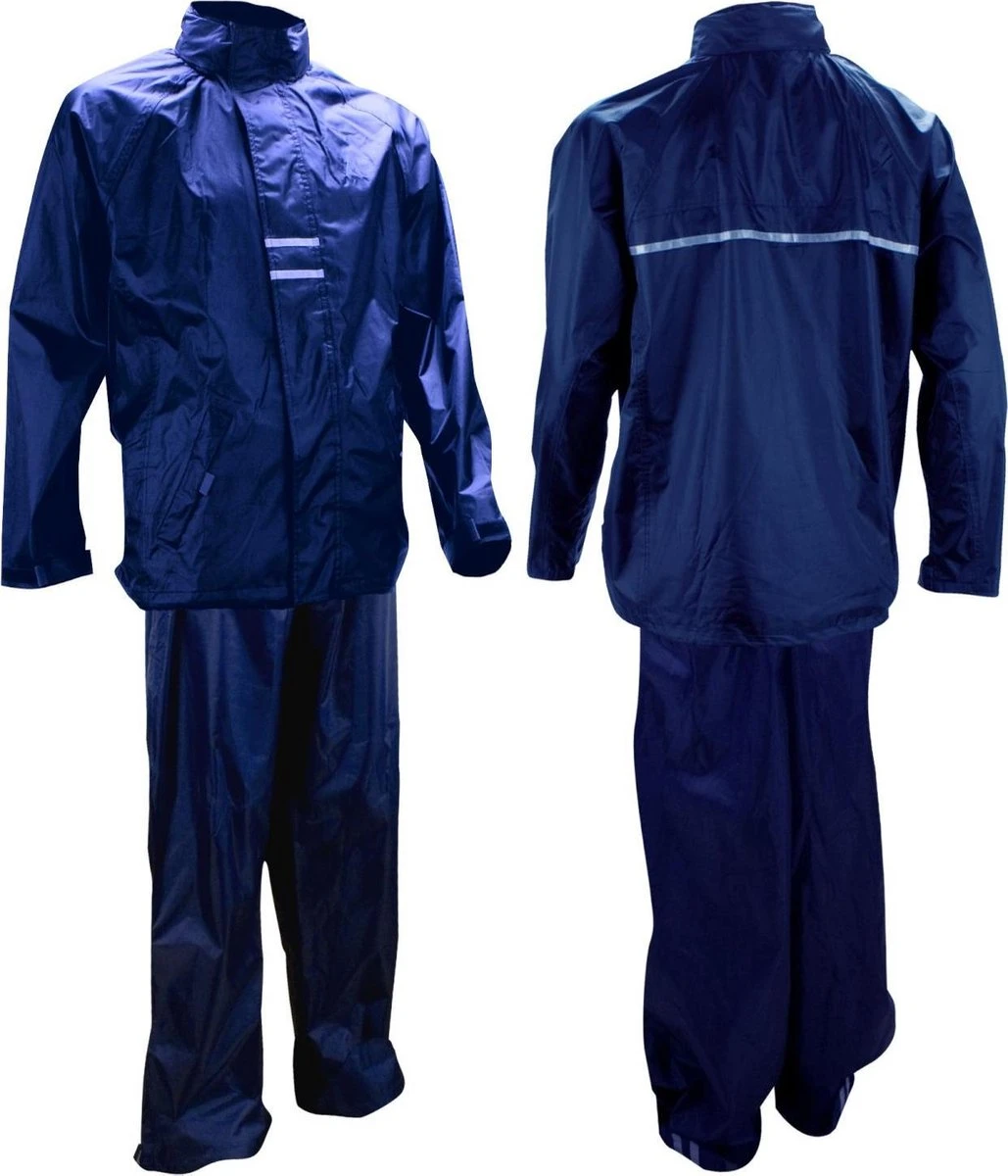 Nooit meer een nat pak met dit Ralka Regenpak! Dit 2-delige regenpak gemaakt van 190T polyester is 2000 mm gecoat en heeft overal getapete naden. Het jack heeft een capuchon in de kraag. In de zoom aan de onderzijde zit een elastisch koord met stopper en klittenband bij de manchetten zodat het jack goed aansluit. De ventilatie openingen op de rug zorgen voor extra draagcomfort. De broek heeft een elastische tailleband en de onderzijde van de pijp kan versteld worden m.b.v. klittenband. Met de reflectie strepen voor- en achter ben je ook in de zwaarste storm goed zichtbaar! De set wordt geleverd in een handig draagtasje.