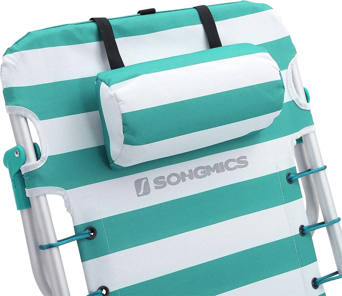 Strandstoel Met Afneembare Hoofdsteun, Draagbare Klapstoel, Campingstoel, Rugleuning Tot 180° Verstelbaar, Met Bekerhouder En Zijvak, Groene En Witte Strepen GCB62JW
