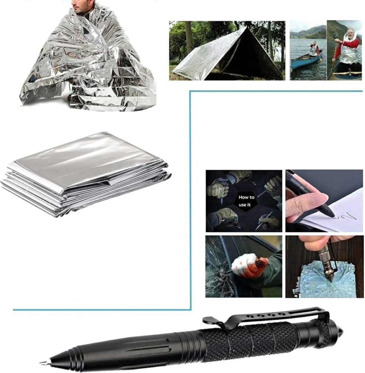 Een 12-in-1 survivalkit in een praktische SOS-box, daarin vind je veel handige tools/items die je zullen helpen moeilijke momenten in de boezem van de natuur (bos en bergen) te overleven. Het is ook perfect voor klassieke toeristische toepassingen (kampeervakanties).