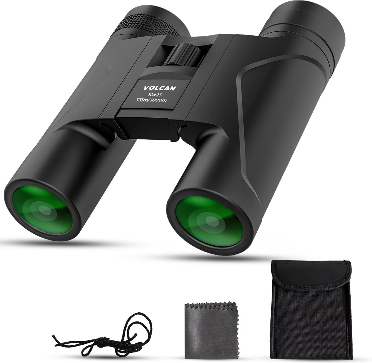 Zie alles 10x dichterbij met de compacte Volcan 10×25 HD verrekijker. Eenvoudig in te stellen op ieder gezicht met de handige verstelmogelijkheden. Ook voor brildragers geen enkel probleem. De full multi-coated (FMC) lenzen samen met het BAK4 prisma zorgen voor een haarscherp beeld en levensechte kleuren. Lenskapjes, nekkoord en een handige draagtas worden meegeleverd.