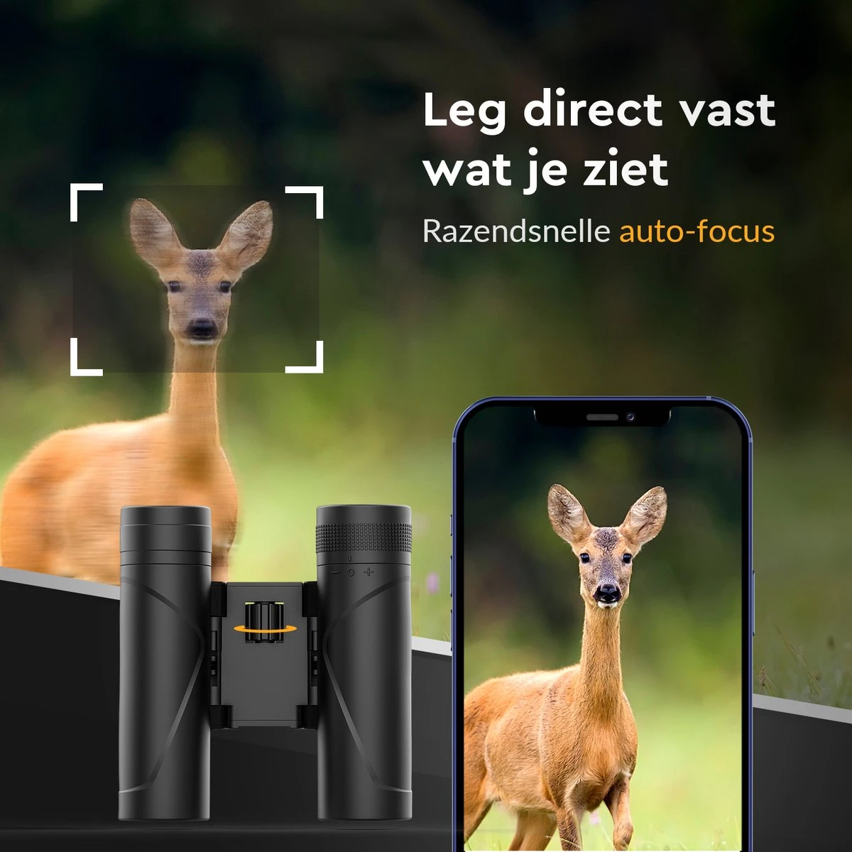 Met de dioptrie ring bij het rechteroog stel je de verschillen tussen jouw twee eigen ogen eenvoudig eenmalig in. Vervolgens kun je de focus op ieder onderwerp razendsnel instellen. De ijzersterke metalen focus knop in het midden van de verrekijker is makkelijk met één of beide handen te bereiken. De soepele draai geeft precies genoeg feedback zodat jij jouw doel binnen no-time in focus hebt. Perfect voor vogeltjes die snel weer verder vliegen.