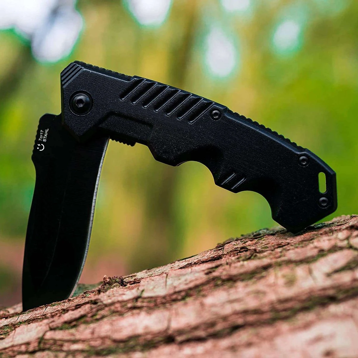 LET OP: duw de veiligheidspal naar links om het zakmes in te klappen!
