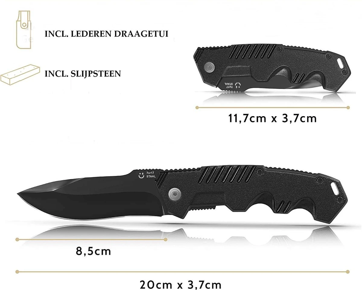 - Complete set: zakmes inclusief sleepsteen. Zo ben je altijd voorzien van het scherpste mes waar je ook bent.