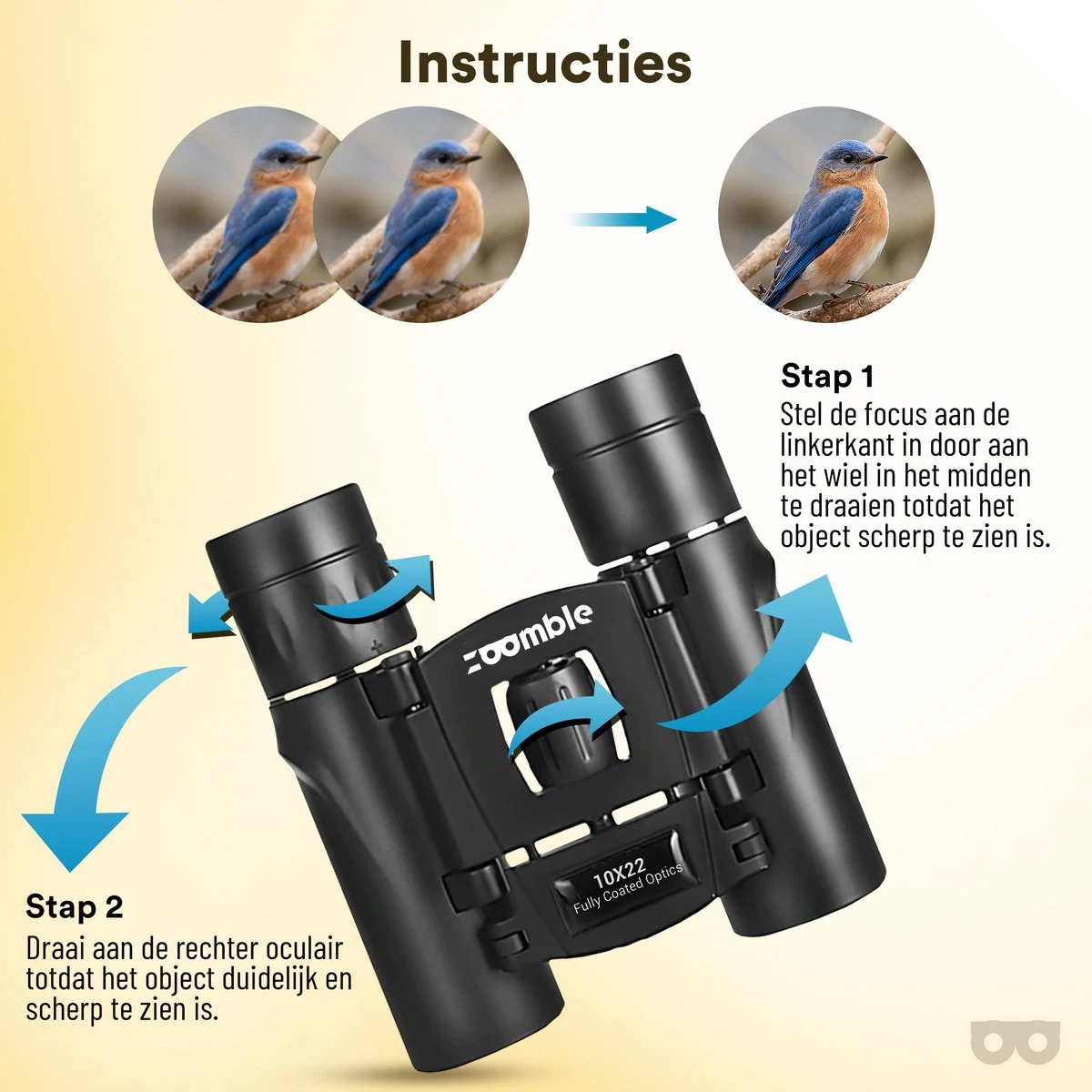 - Inhoud verpakking: 1x Verrekijker, 1x nekkoord, 1x opbergtas, 1x schoonmaakdoekje lens, 1x handleiding 1x E-book vogelspotten